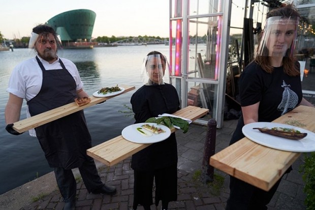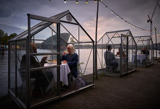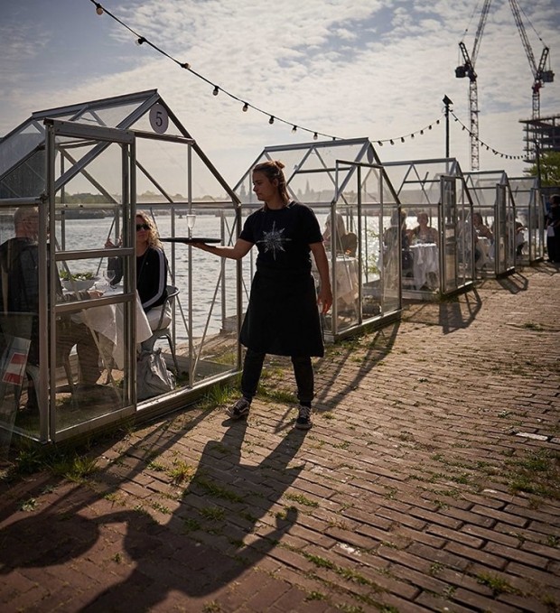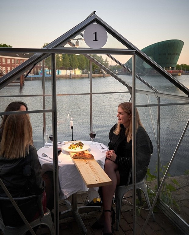As a consequence of coronavirus, all cafes and restaurants around the world kept closed for a long time. When countries began to ease restrictions and started to reopen the doors, a restaurant in Amsterdam, Mediamatic ETEN, created a clever idea. The restaurant offers mini greenhouses for its visitors and started a new way to dine out. With this new way, they can maintain their work and allow social distance measures. They called this project “Serres Séparées’’ which means “separated greenhouses.” In order to create a safe place, this restaurant diminishes physical contact between the waiters and the visitors by serving foods on a long wooden board. In addition to its social-distanced places, this restaurants’ waiters wear gloves and protection masks. If you want to adapt yourself to a pandemic life yet eat out, this restaurant may be the perfect place.