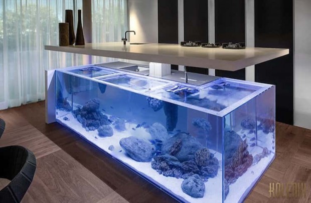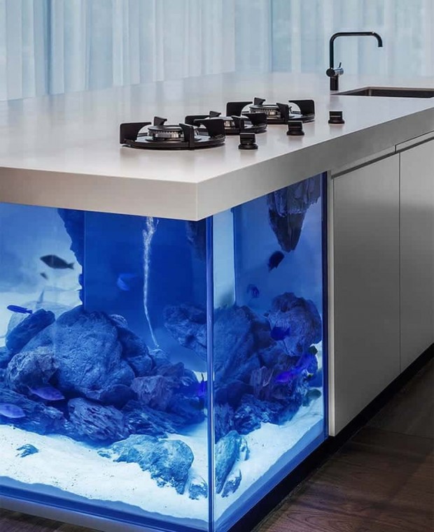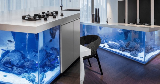 In today’s world, there are so many designs for kitchens that new ones do not seem authentic to us. However, Dutchman Robert Kolenik’s stunning design will change the common prejudice. The impressive kitchen countertop called the 'Ocean Keuken' is supplied with a big aquarium. The first impression may surprise you due to the attractive quality of design; furthermore, the more you examine, the more you will find even finer details. On the other hand, you may be concerned about feeding fish in the aquarium, but you should not. The design ensures easy access to the aquarium. You can show off your friends and neighbors with the Ocean Keuken counter!