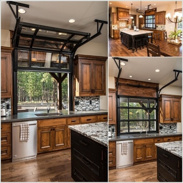 Kitchen designs are very important, especially for women today. Here is a kitchen with a perfect design. A window placed right behind the counter makes it easier to watch outside and to get fresh air while in the kitchen.