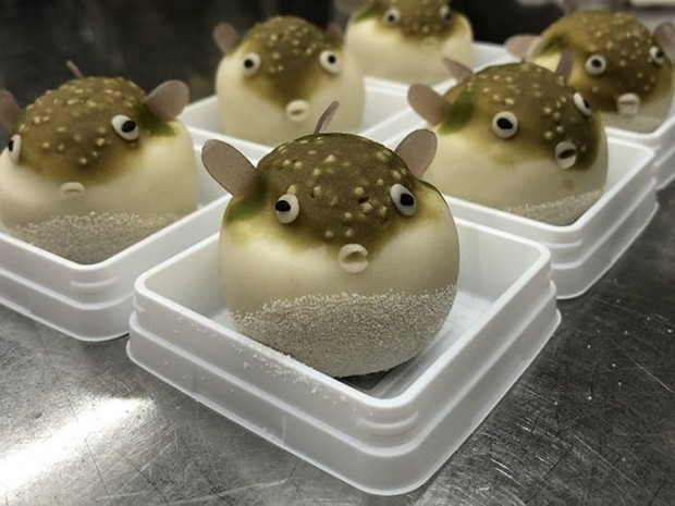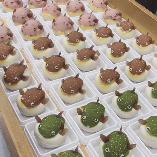 Apart from birds, Kurkozasu bakes various kinds of wagashi characters. Puffer fishes, flower shaped snacks are just two of those amazing confections!